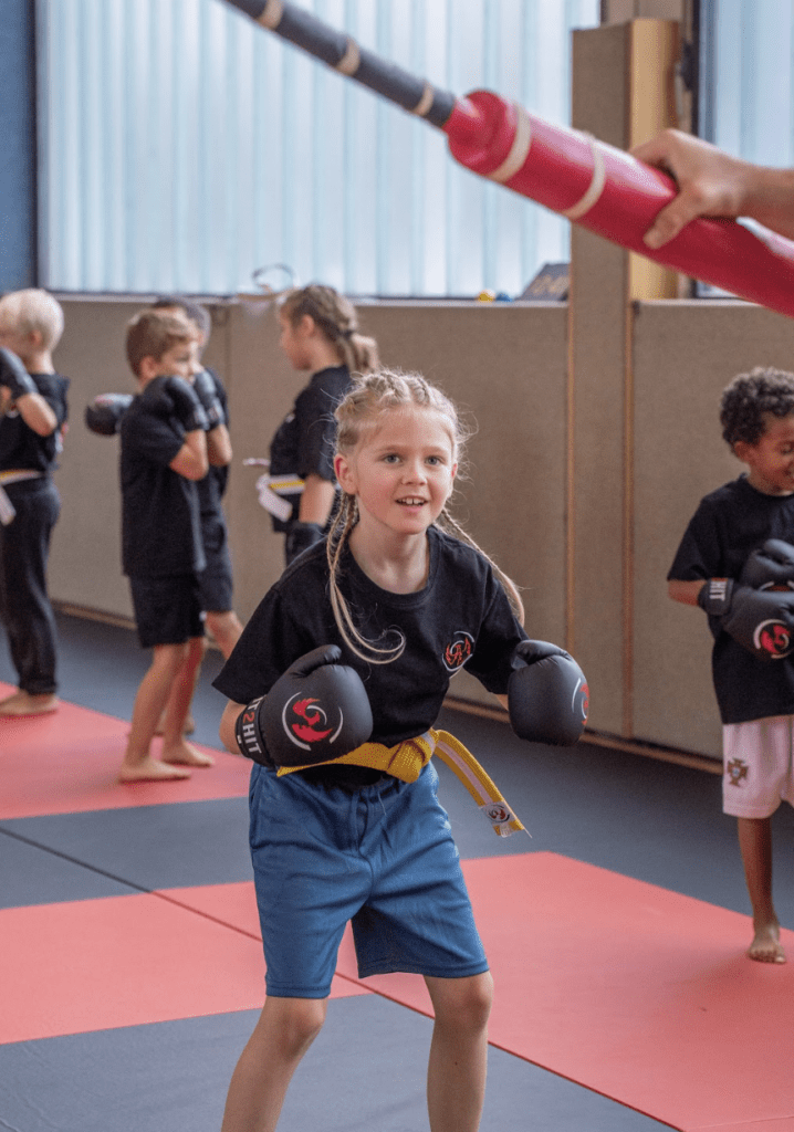 Nein. Im Kindertraining bei Fit2Hit wird nicht gegeneinander gekämpft. Alle Techniken (Schläge, Kicks) werden kontrolliert und ausschließlich an Pratzen oder Schlagpolstern geübt – sicher, kindgerecht und ohne Verletzungsrisiko.